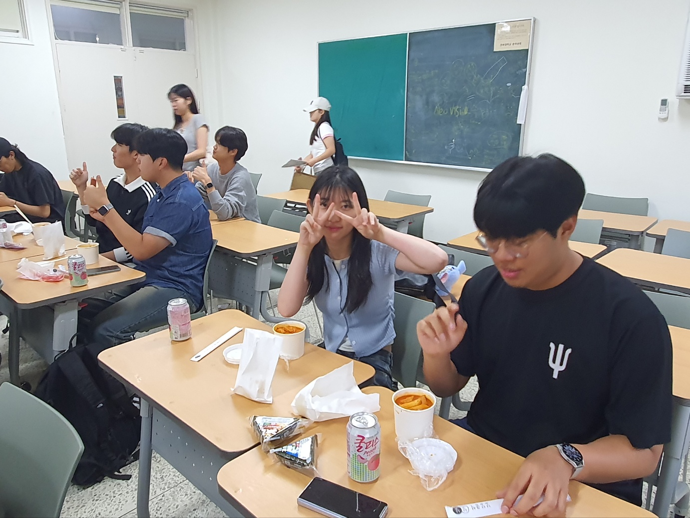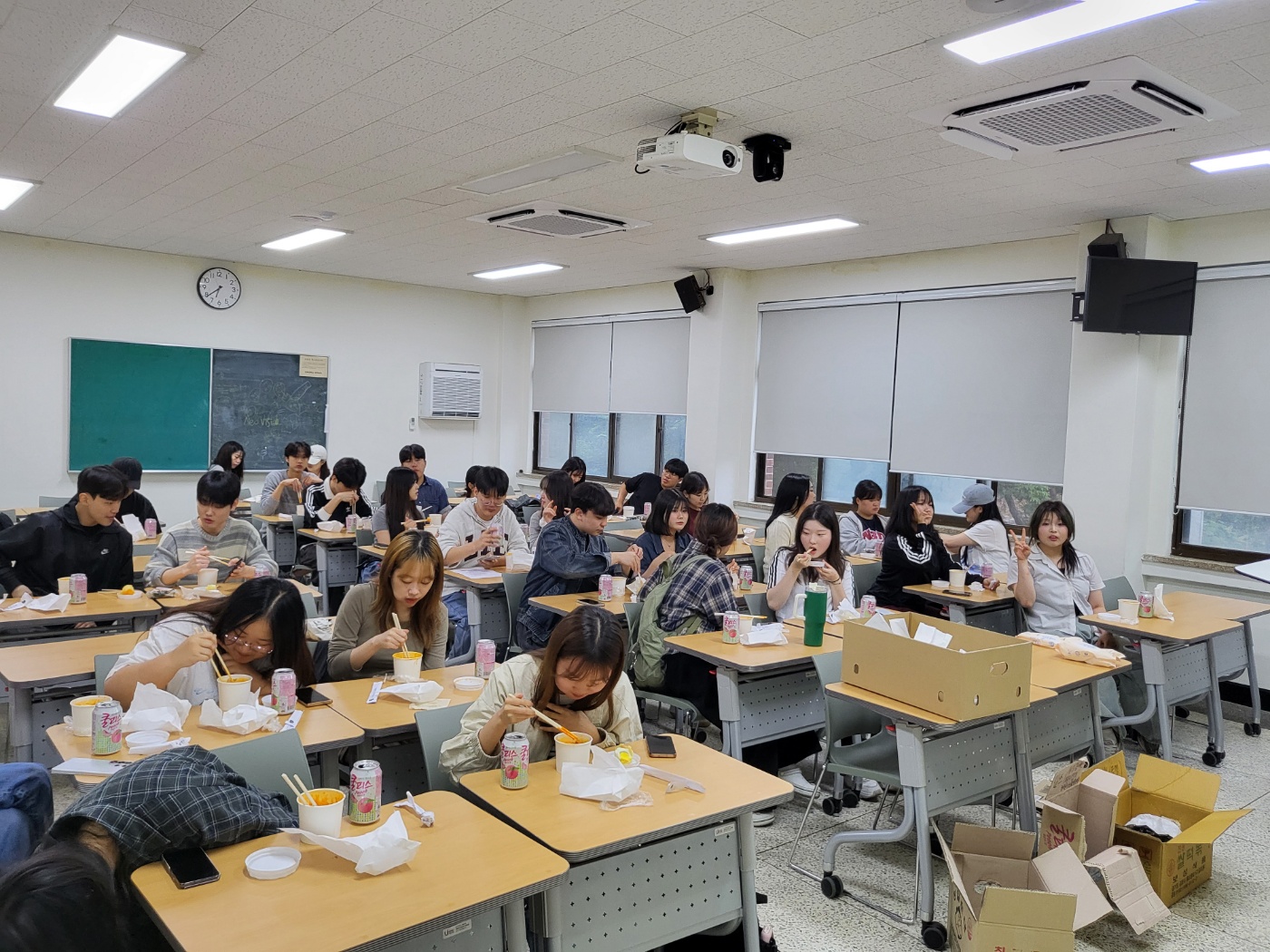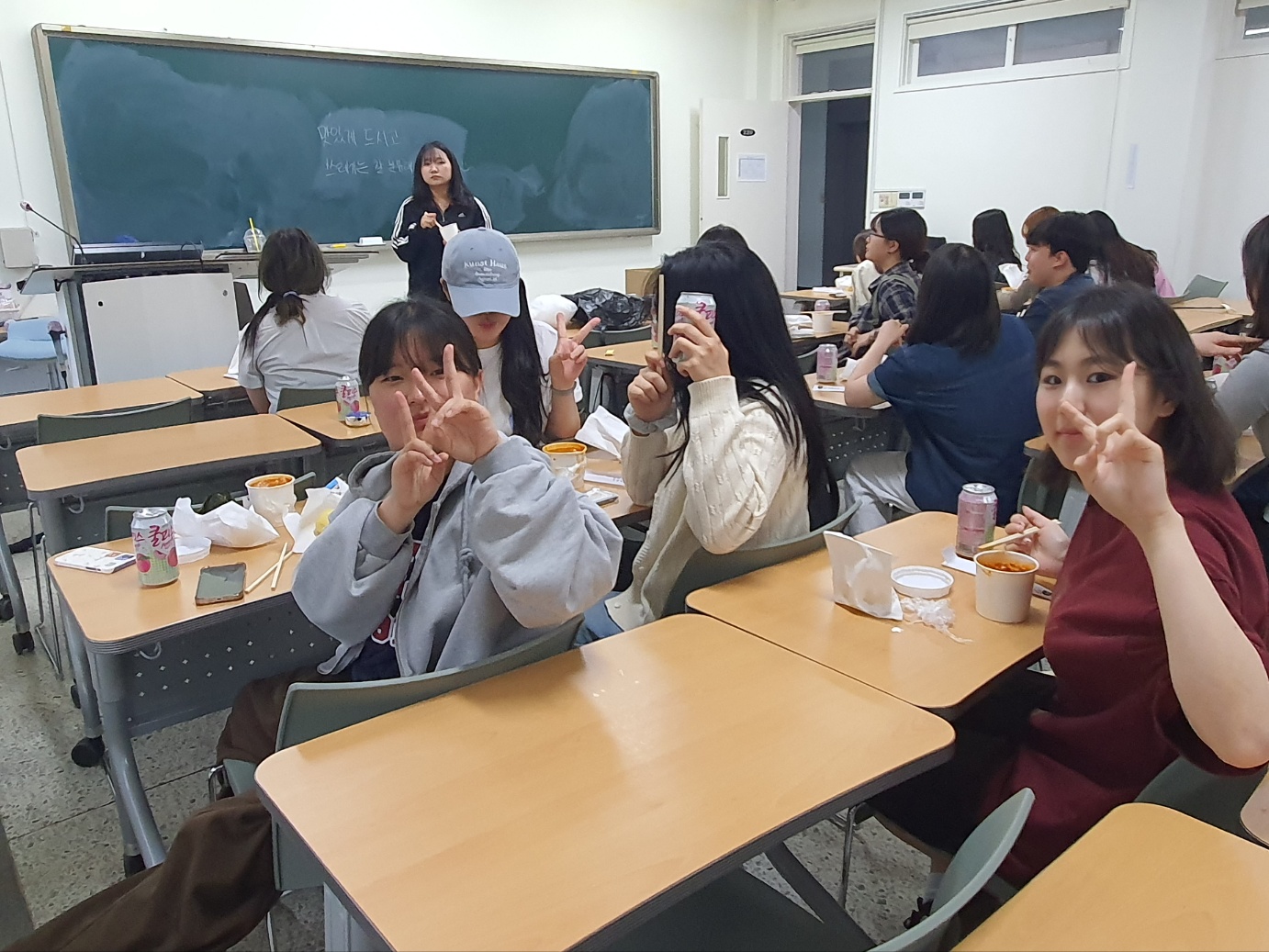 취식 공간인 사회과학대학 220호 강의실에서 학우들과 함께 먹으며 시험의 짐은 잠시 내려놓고 즐거운 시간을 보냈습니다.