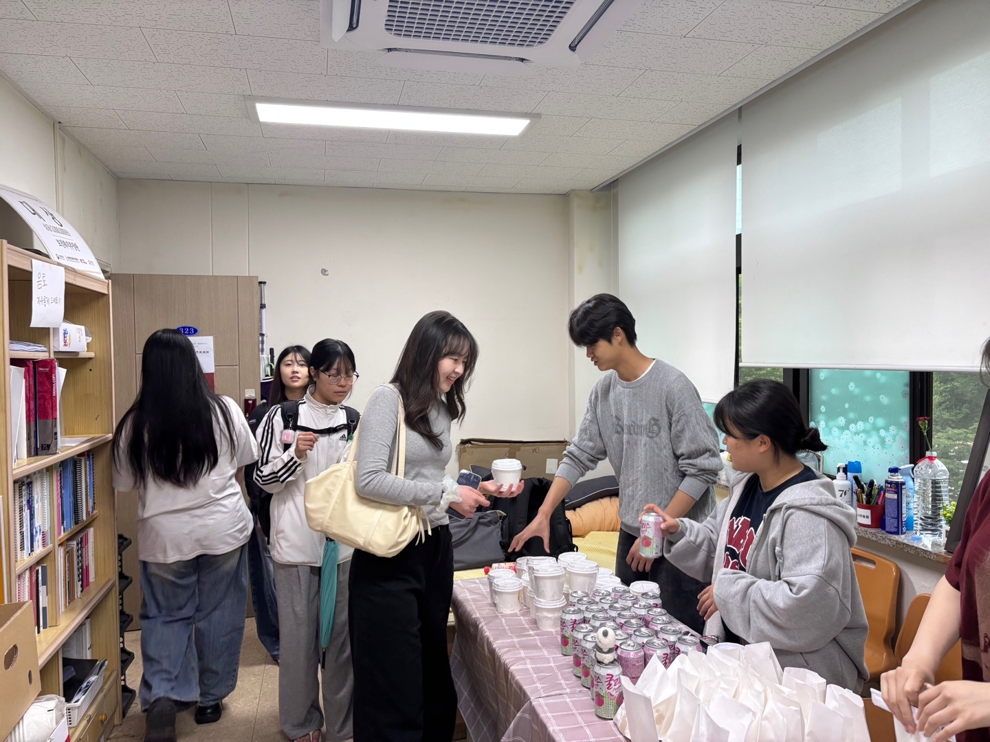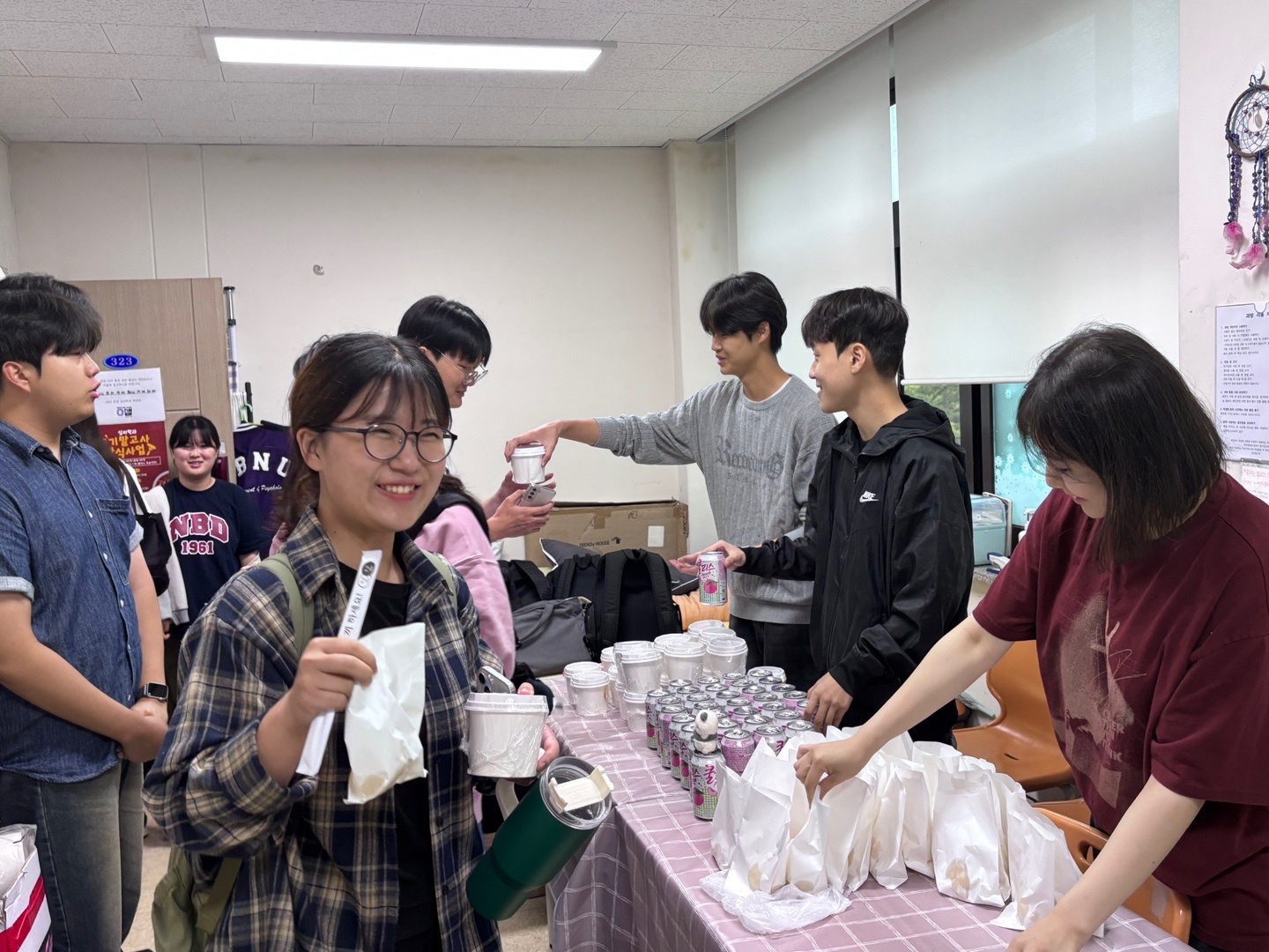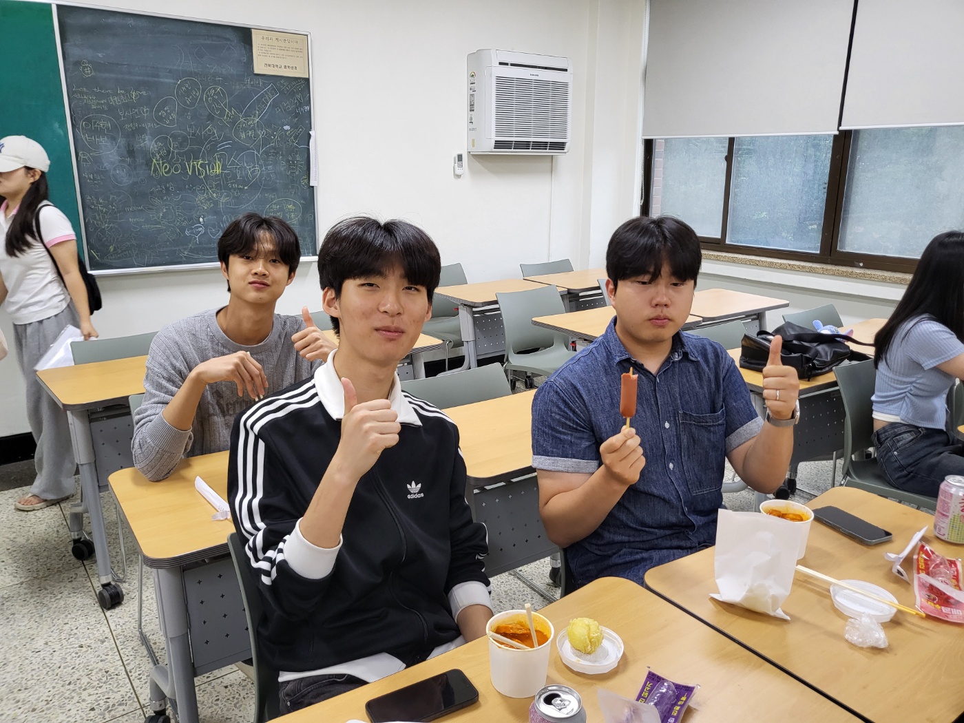 취식 공간인 사회과학대학 220호 강의실에서 학우들과 함께 먹으며 시험의 짐은 잠시 내려놓고 즐거운 시간을 보냈습니다.