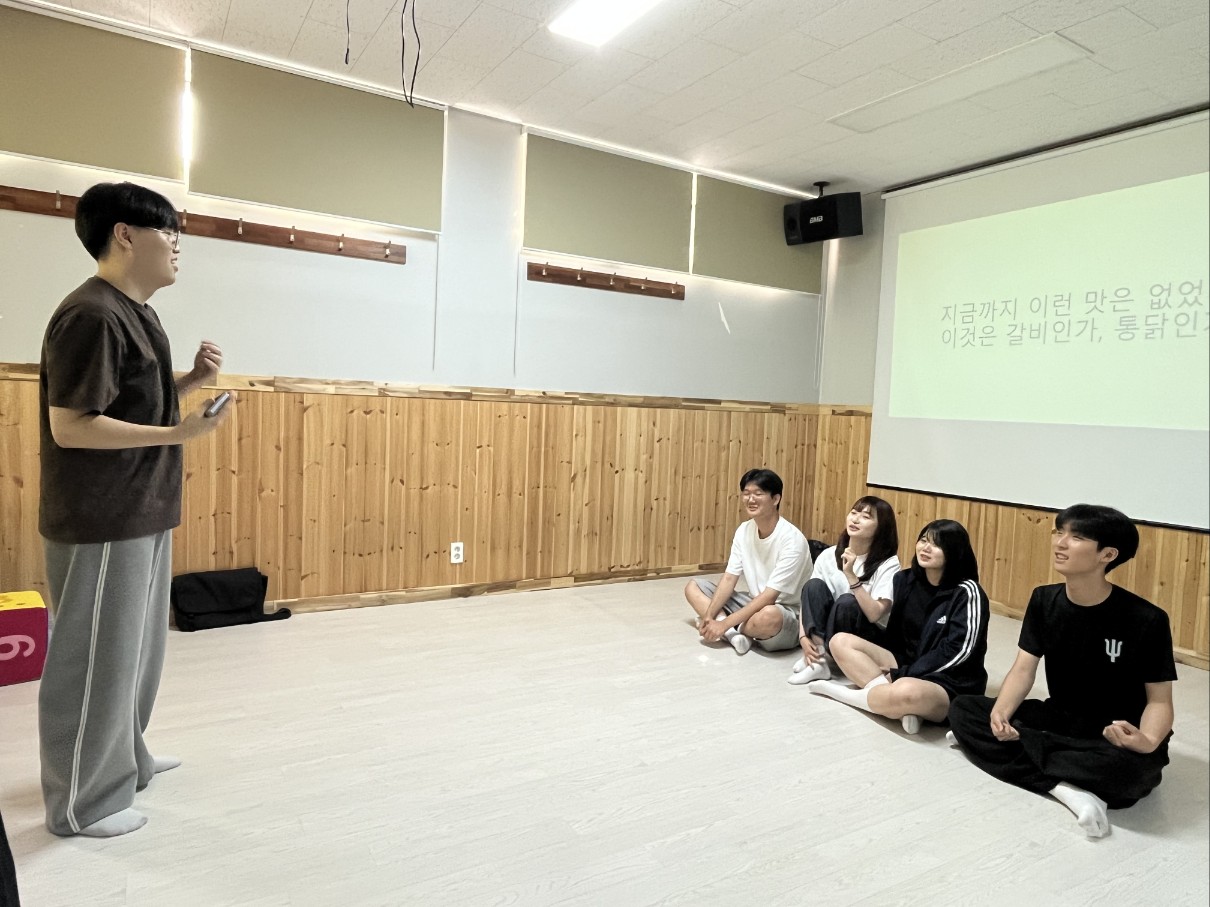 숙소에 도착한 후, 조별로 영화 명대사 영어로 설명하기, 인물 스피드 퀴즈, 이어말하기 등 재미있는 레크레이션으로 동기들 간의 친목을 다졌습니다.