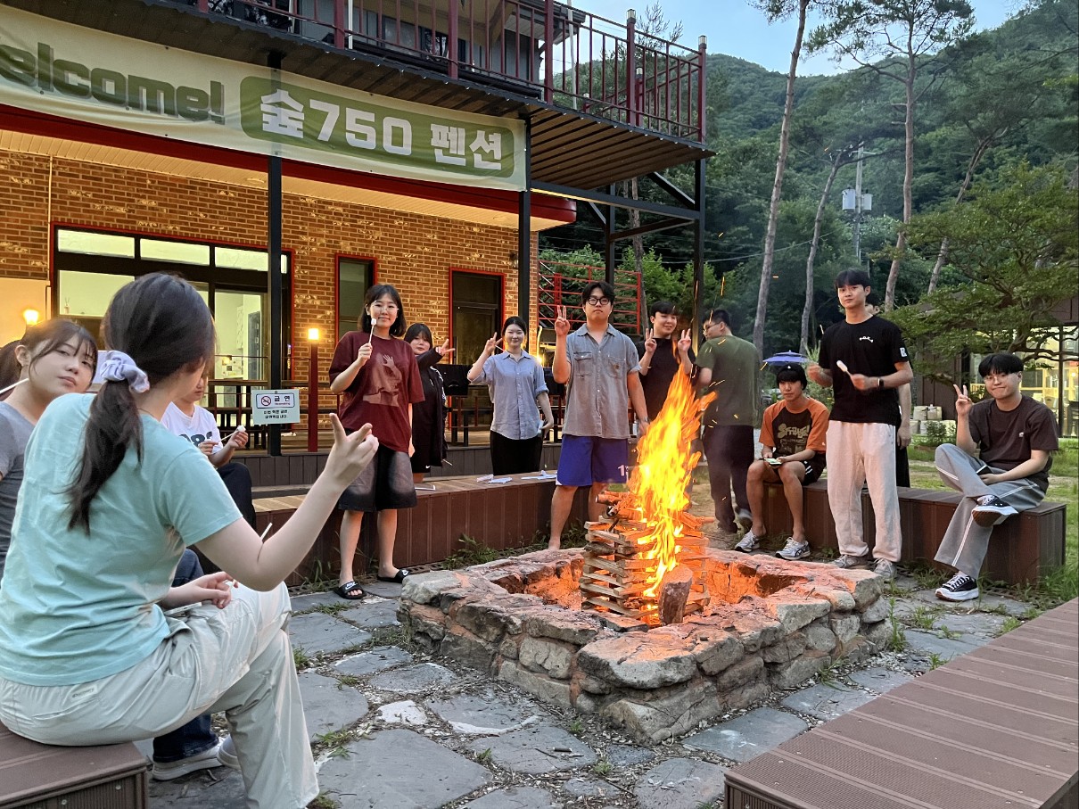 맛있는 저녁식사를 즐긴 후 숙소 앞에서 캠프파이어를 진행해 마시멜로우를 함께 구워 먹으며 즐거운 시간을 보냈습니다.