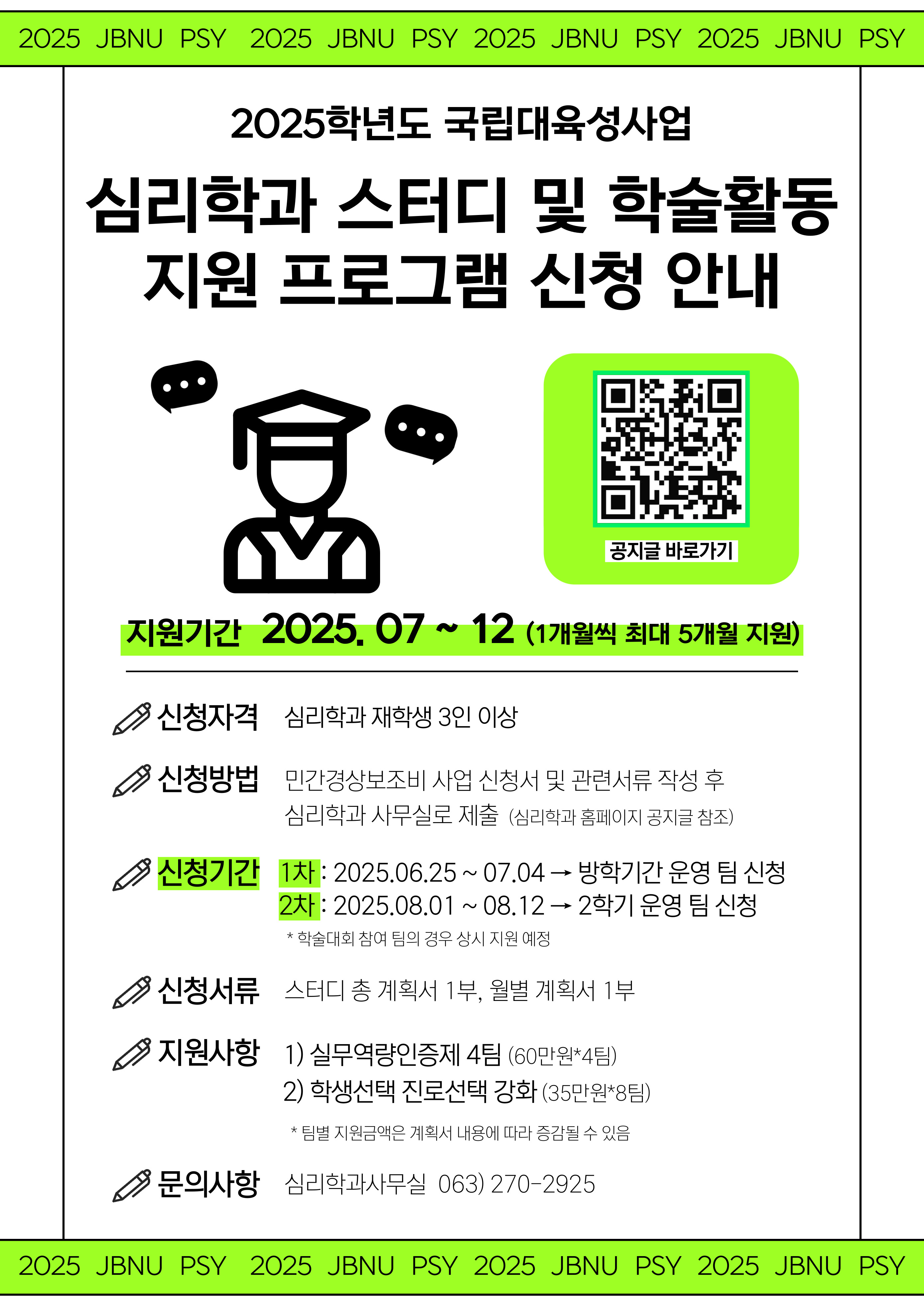 <2025학년도 국립대육성사업 심리학과 스터디 및 학술활동지원 프로그램 신청 안내>
